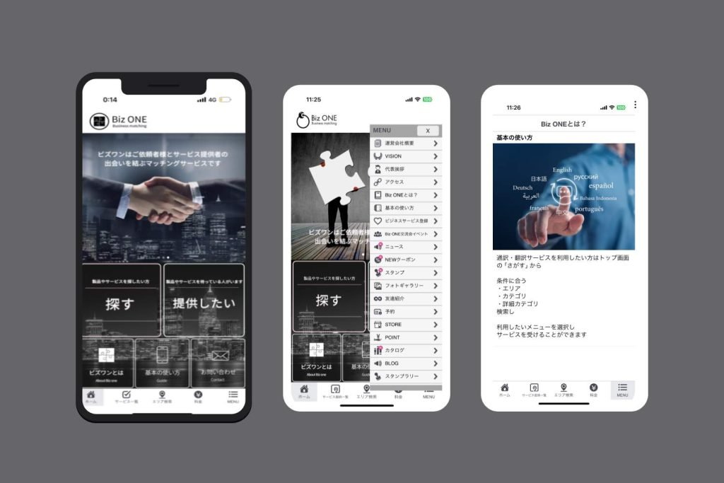 ビジネスマッチング Biz ONE 依頼者様とサービス提供者の出会いを結ぶマッチングサービス こんなお悩みありませんか? Biz ONEは、依頼者様とサービス提供者を結ぶ 革新的なビジネスマッチングアプリです。 企業があなたと 直接つながる仕組み。 BizONEはエージェントではありません。 仲介役としてやりとりを仕切ることはありません。 セミナーやイベントを企画したい企業と、新たなチャンスを探す人 それぞれが登録して直接コミュニケーションをとることができます。 イベントの告知、開催、管理、予約が一元化されたプラットフォームを通じて、効率的な新しい形の直接ビジネスマッチングを提供します。 BizONEの強み 一元化されたプラットフォーム 出会いたい人✨ ニックネームで登録OK! 手軽に始めることができます。ニックネームだけで登録可能。興味のある業界を選んで、理想のビジネスマッチをカンタン検索! エリア検索・料金検索! 希望の条件で簡単にイベントを見つけられます。エリア、日付、料金を指定して、自分に合ったイベントをすぐに探せます。 1クリックで予約!参加して出会いを広げよう! 希望のイベントをたった1クリックで予約。直接参加して、新たなビジネスのチャンスを掴んでください。 イベントを企画運営したい企業様✨ 登録料・掲載料ゼロ! コスト・運用の手間を気にせずにイベントを公開できます。アプリの管理画面から手軽にイベントを登録・公開できます。 詳細設定 サービスの内容日にち料金決済も自由にアプリ内で設定管理ができます。手数料・マージンはゼロなので100%利益還元! 嬉しいマーケティングツールが豊富 アプリ独自のプッシュ通知やコミュニケーションツールが常備。すべてがアプリ一つで完結! 今だけの特別オファー:掲載料・登録料ゼロ! 手数料・マージン一切なし。ローンチを記念して、初期費用完全無料。この機会にビジネスの可能性を広げましょうこちらから 手数料・マージン一切なし。BizONEはあなたのビジネスを応援します。 さっそく無料ではじめてみる